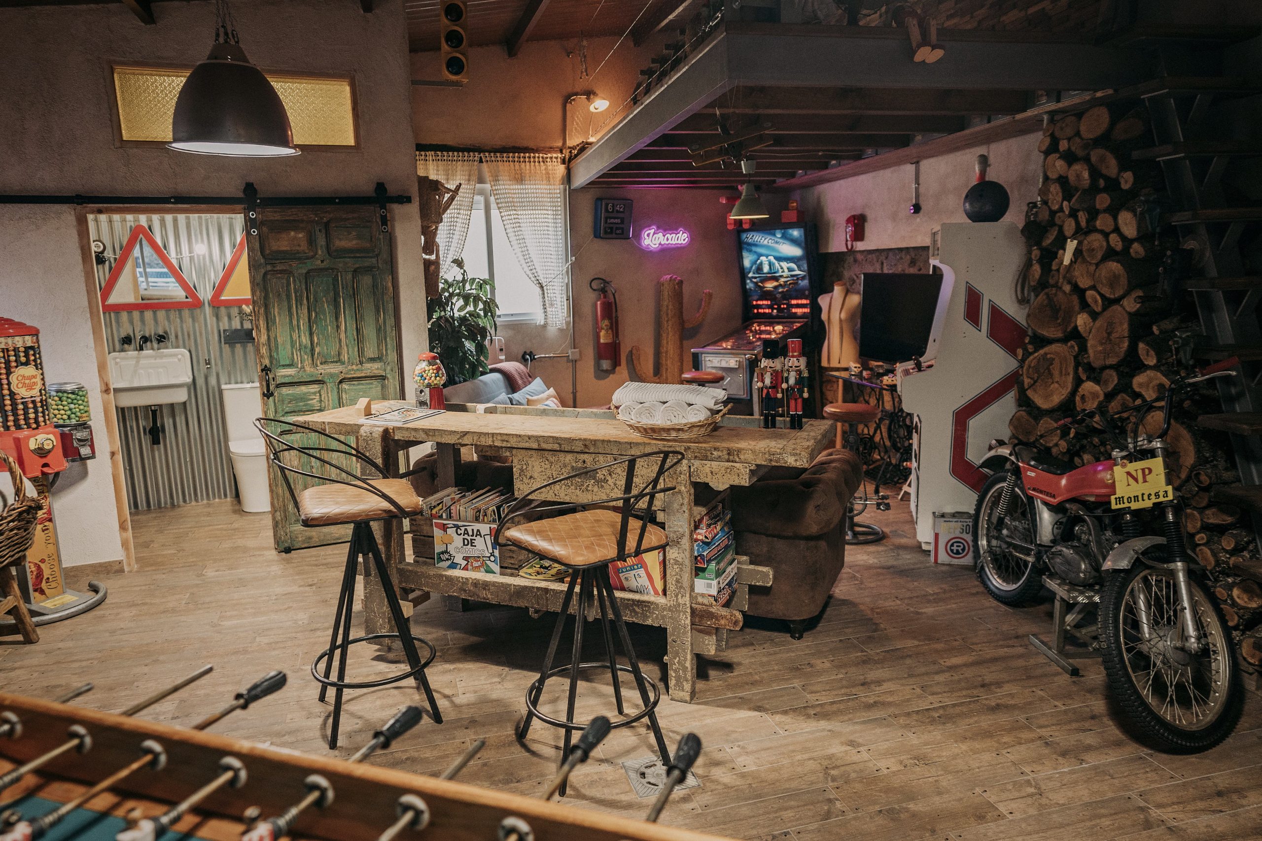 Su distribución tipo loft, su estilo retro y todos los detalles y máquinas de juegos que hay en este alojamiento, lo hacen el lugar perfecto para pasar unos días en los que la diversión y el disfrute estarán asegurados.